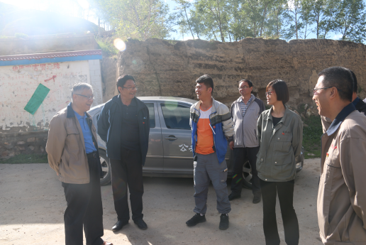 (圖為集團(tuán)公司調(diào)研組在湟源縣和平鄉(xiāng)草溝村與鄉(xiāng)黨委書記、村委書記交流扶貧攻堅工作)