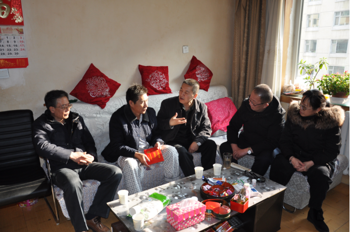在退休老黨員、老勞模毛敏生和馮芳才家中,王玉輝書(shū)記與他們拉起家常,詢(xún)問(wèn)他們的身體狀況和家庭情況,感謝他們?yōu)榍嗪N锂a(chǎn)發(fā)展所做出的努力和貢獻(xiàn),并代表集團(tuán)黨委送上組織的關(guān)懷和美好新春祝福。