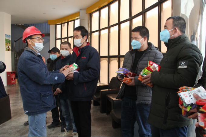 (工投公司 訊 陳倫/文 劉燕/攝)新型冠狀病毒感染肺炎疫情防控以來,公司部分職工因封村封路暫時居住在公司職工公寓樓。為解除他們的后顧之憂,2月15日上午,公司黨委委員、副總經理王兆明同志,帶領工會、團支部及相關負責人組織開展了慰問活動,為大家送去了面包、火腿腸等食品,帶去了組織的溫暖與關愛。