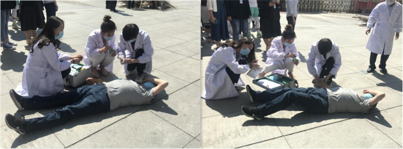 在模擬火災(zāi)救援現(xiàn)場(chǎng)中發(fā)現(xiàn)被困人員,由應(yīng)急救援隊(duì)將被困人員從火場(chǎng)中救出并帶至安全區(qū),由醫(yī)療救護(hù)組對(duì)傷員進(jìn)行救治及轉(zhuǎn)移。