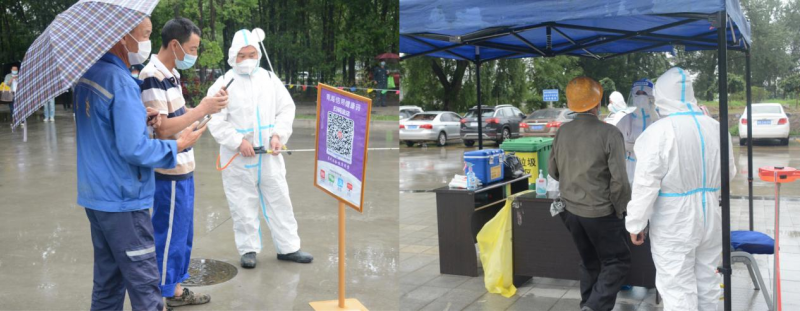 清晨,在綿綿細(xì)雨中園區(qū)新一輪區(qū)域核酸檢測(cè)有序推進(jìn),核酸檢測(cè)點(diǎn)搭起遮雨帳篷,公司廣大黨員干部奮勇?lián)?dāng)沖鋒在前,維護(hù)秩序、進(jìn)行掃碼,醫(yī)護(hù)人員快速有效地采集核酸。大家上下同心、通力配合,有序高效的進(jìn)行核酸檢測(cè),僅用了三個(gè)多小時(shí)就全面完成了園區(qū)人員核酸采樣工作。據(jù)統(tǒng)計(jì),本次核酸檢測(cè)共有1103名干部職工及外租單位人員參加,檢測(cè)結(jié)果全部為陰性。