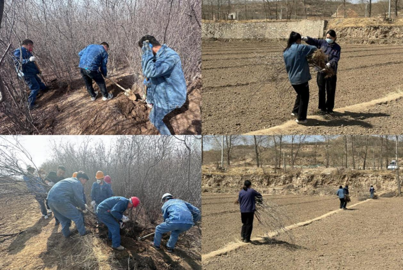 在大家的共同努力下,千余棵桃樹(shù)和紫丁香被連根“請(qǐng)”出,它們隊(duì)列整齊地矗立在綠化指定區(qū)域??粗矍耙言苑N完畢的小樹(shù)苗,黨員代表張濤同志感慨地說(shuō)到:今天的黨日、團(tuán)日活動(dòng)不僅讓我們有幸參與到“愛(ài)企、護(hù)企”行動(dòng)之中,用自己的雙手為物產(chǎn)北川工業(yè)物流園區(qū)域內(nèi)景觀(guān)增添了一片綠色、再造一處景觀(guān)。