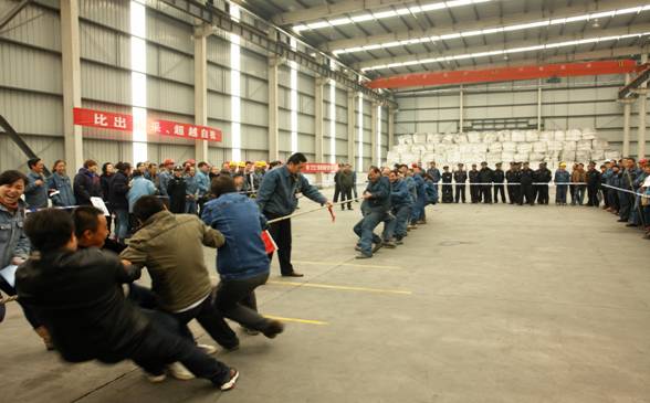 經(jīng)過賽前的精心準備和熱身訓練,隊員為集體爭取榮譽,賽出了亮點。拔河比賽是考驗一個團隊凝聚力、合作精神以及組織紀律性的最好時機,賽場外不時爆發(fā)出陣陣熱烈的加油助威聲,場上隊員鼓足了勁兒,連平時優(yōu)雅秀麗的女士們此時也變成了大力士。最后,經(jīng)過激烈的淘汰賽,長春炭素有限公司、電解一車間、電解二車間、鑄造車間隊進入了最后的決賽。在比賽中,不少隊員的手磨破了皮,但卻沒有人在意,正是這頑強拼搏的精神鑄就了我們物產(chǎn)北川工業(yè)園區(qū)蓬勃向上的生命力。