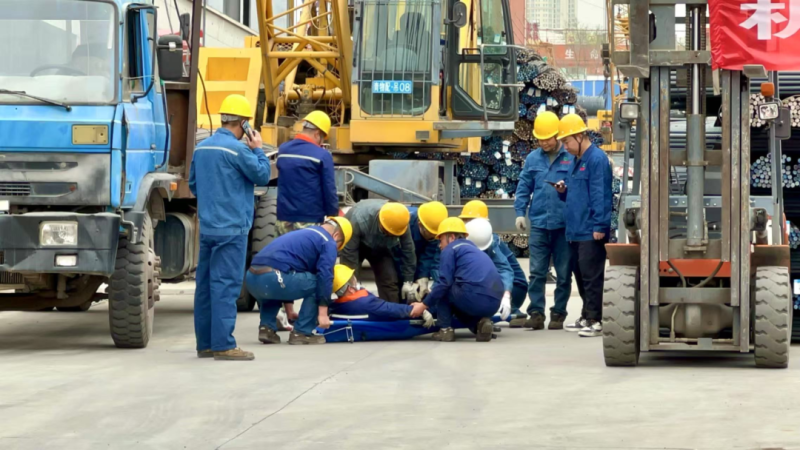 本次演練模擬鋼板區(qū)在進(jìn)行吊裝作業(yè)時突發(fā)輪胎起重機(jī)吊裝貨物擺幅過大傷人事故。演練前期,制定了詳細(xì)方案并組織培訓(xùn),籌備救援、醫(yī)療等物資,布置模擬場景。演練啟動后,通訊聯(lián)絡(luò)組迅速傳遞事故信息,現(xiàn)場指揮組即刻啟動應(yīng)急響應(yīng)。警戒疏散組快速隔離現(xiàn)場、疏散人員;應(yīng)急救援組解救受傷人員、排除設(shè)備故障;醫(yī)療救護(hù)組對傷員緊急救治并送醫(yī);后勤保障組及時供應(yīng)物資,各環(huán)節(jié)有序推進(jìn)。