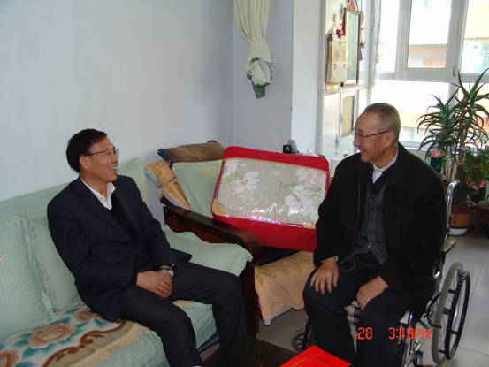 2013年1月28日,春節(jié)來(lái)臨之際,省委組織部王志明副部長(zhǎng)在省國(guó)資委黨委副書記毛占彪、物產(chǎn)集團(tuán)領(lǐng)導(dǎo)白家林、王仁芬的陪同下,走訪慰問(wèn)了集團(tuán)系統(tǒng)生活困難老黨員肖振東。王志明副部長(zhǎng)親切地詢問(wèn)肖振東的身體狀況、生活和家庭情況,發(fā)放了慰問(wèn)金和慰問(wèn)品,并希望他保重身體,愉快安度晚年。老黨員肖振東激動(dòng)地表示感謝黨組織的關(guān)懷,感謝上級(jí)領(lǐng)導(dǎo)的關(guān)心!