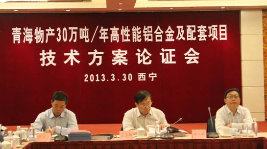 青海物產(chǎn)工業(yè)投資有限公司30萬(wàn)噸/年高性能鋁合金及配套項(xiàng)目技術(shù)方案論證會(huì)于2013年3月30日-31日在青海西寧召開,省物產(chǎn)集團(tuán)總公司總經(jīng)理王玉輝、黨委書記白家林、北川工業(yè)園管委會(huì)副主任薛萬(wàn)革、鋁合金、炭素行業(yè)的9位特邀專家,物產(chǎn)工投高級(jí)經(jīng)濟(jì)師常海寧、西北鋁高級(jí)工程師張學(xué)平、瑞敏教授級(jí)高工黃金法、云南云鋁高級(jí)工程師車立志、東方希望教授級(jí)高工王堅(jiān)、青海鑫恒高級(jí)工程師王雄、青海黃河再生鋁高級(jí)工程師陳蒲明、甘肅索通炭素高級(jí)工程師陳衛(wèi)國(guó)、物產(chǎn)工投高級(jí)工程師薛玉貴、貴陽(yáng)鋁鎂設(shè)計(jì)研究院黨委書記呂維寧、副院長(zhǎng)寧前進(jìn)、沈陽(yáng)鋁鎂設(shè)計(jì)研究院副院長(zhǎng)劉敬及相關(guān)主設(shè)人員、項(xiàng)目建設(shè)單位代表等共53人參加了會(huì)議。專家委員會(huì)推選由常海寧擔(dān)任主任委員、張學(xué)平擔(dān)任副主任委員。