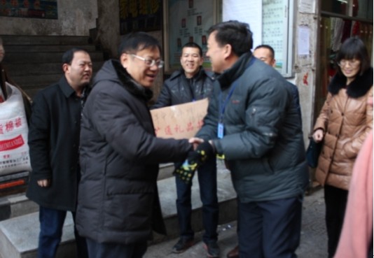 集團(tuán)領(lǐng)導(dǎo)一行先后來到省三建公司汽配市場、三明市場、付家寨、平安分市場、臨空公司施工現(xiàn)場、朝陽物流和機(jī)電市場、配送公司倉庫、現(xiàn)代物流家美家具建材城、長春炭素、康寧公司、工業(yè)投資公司生產(chǎn)車間和項(xiàng)目現(xiàn)場、物產(chǎn)民爆公司倉庫以及物產(chǎn)汽貿(mào)公司上海大眾4S店等生產(chǎn)經(jīng)營第一線,深入了解春節(jié)期間生產(chǎn)經(jīng)營情況、安全生產(chǎn)情況,親切慰問堅(jiān)守在一線的廣大員工,將慰問品分發(fā)到值守人員手中,帶去集團(tuán)領(lǐng)導(dǎo)暖暖的問候和衷心的祝福。每到一處,集團(tuán)領(lǐng)導(dǎo)同一線員工一一握手,詳細(xì)詢問節(jié)日期間值班和職工生活安排情況,同時(shí)對(duì)堅(jiān)守崗位的職工給予充分的肯定和高度的贊揚(yáng),為他們?cè)诠?jié)日期間舍小家為大家的奉獻(xiàn)精神表示衷心的感謝。王玉輝總經(jīng)理情深意長地說:正是因?yàn)橛辛艘痪€員工的勤奮和努力,才確保了集團(tuán)系統(tǒng)生產(chǎn)經(jīng)營的平穩(wěn)運(yùn)行,感謝大家!同時(shí)要求所屬公司領(lǐng)導(dǎo)春節(jié)期間一定要安排好職工的生產(chǎn)生活,并做好各項(xiàng)安全防范工作。
